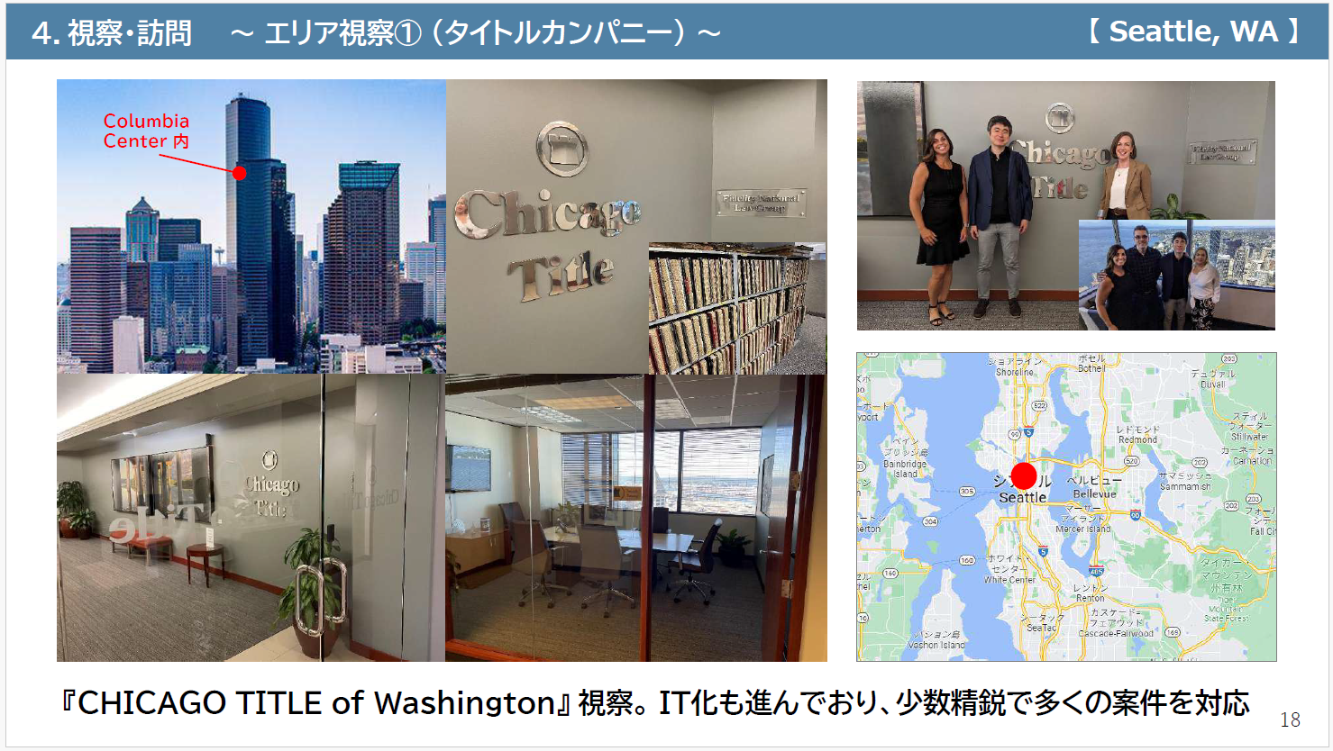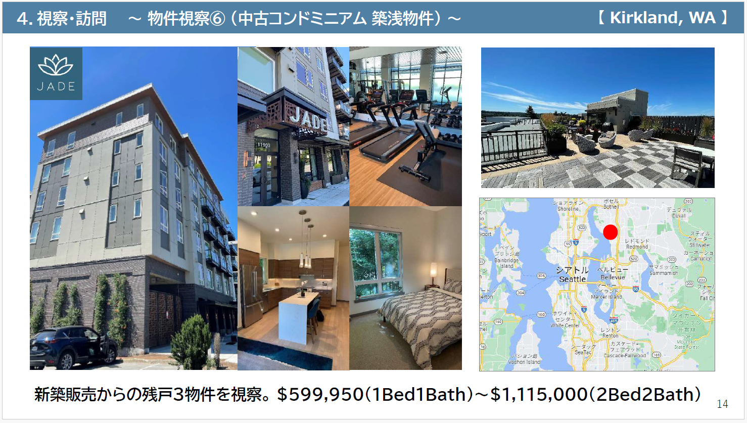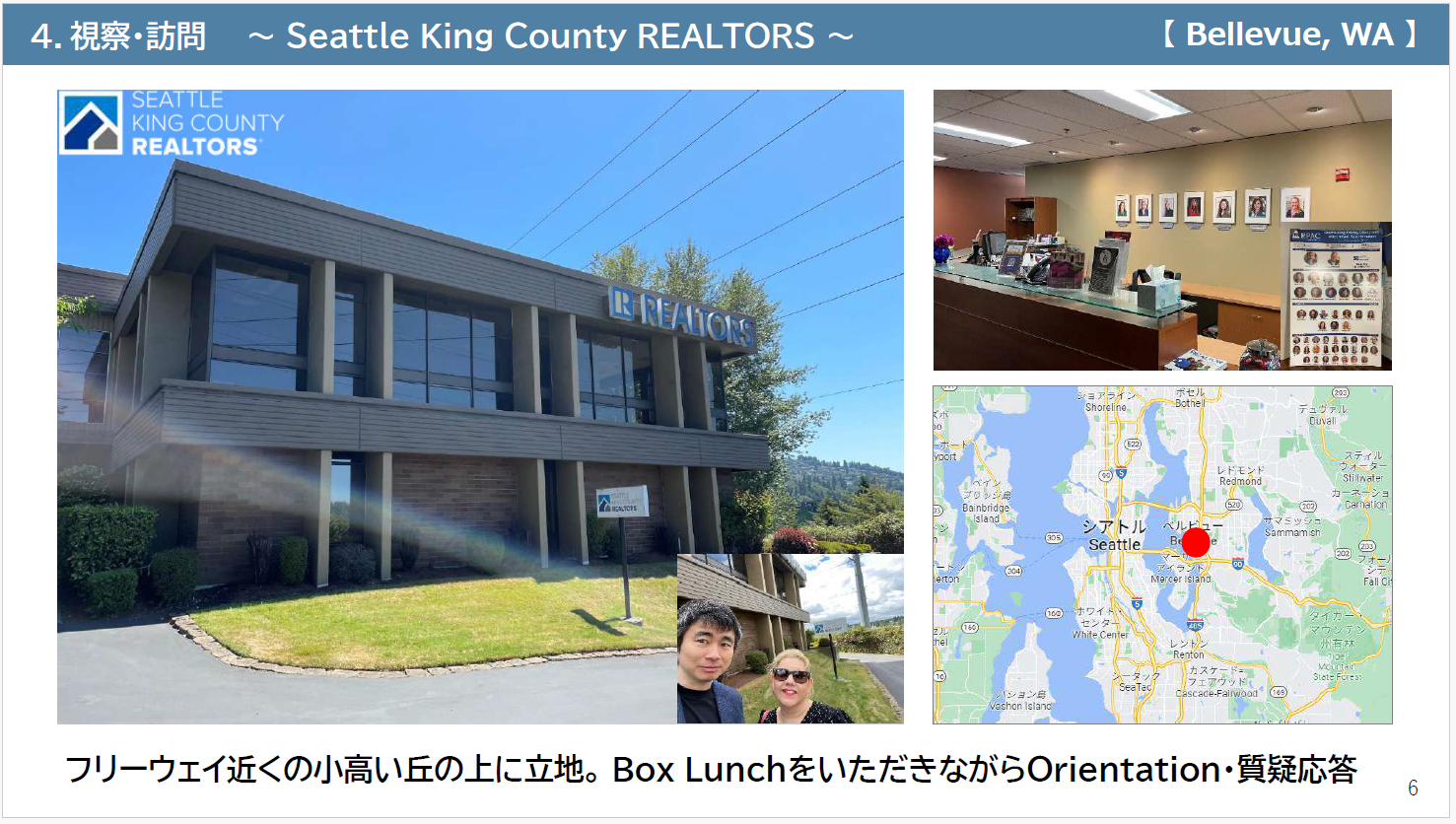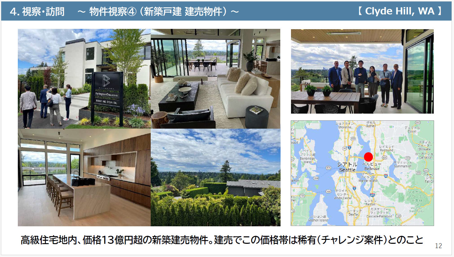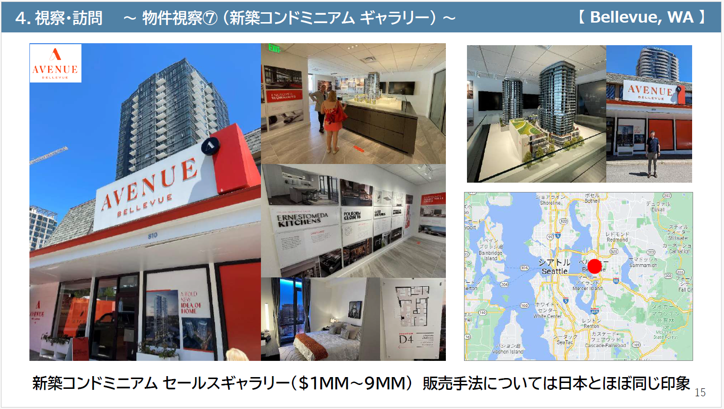 (主な物件視察先 : Seattle、Bellevue、Redmond、Kirkland 等)