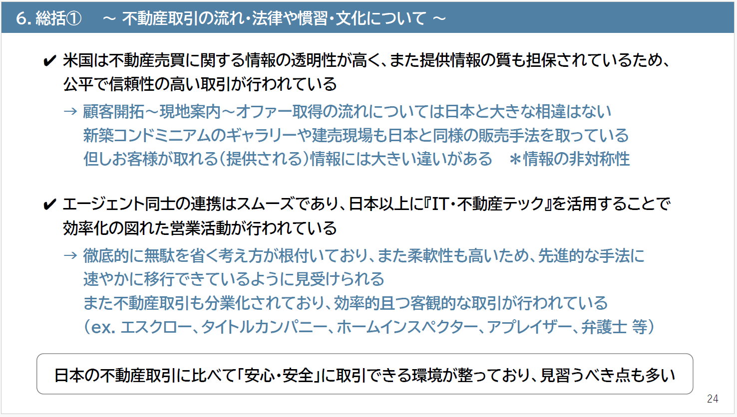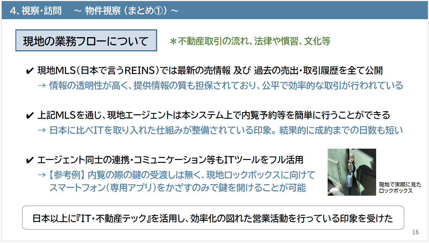 (1) 現地エージェントの働き方や不動産取引の流れ、法律や慣習、文化等を学ぶ・経験する