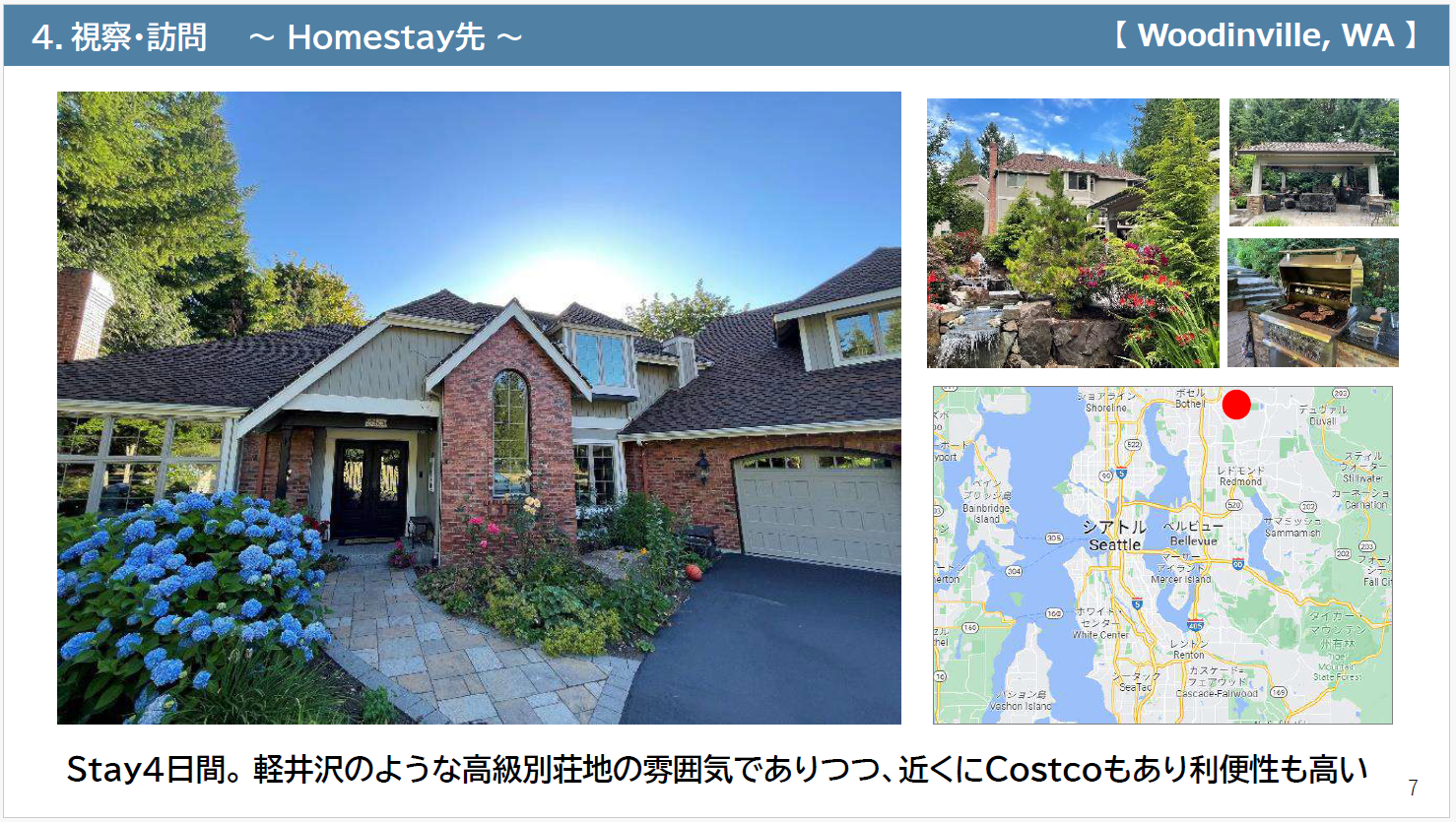 目的 現地の不動産エージェント宅にホームステイし、生活を共にすることで、エージェントの働き方や米国不動産