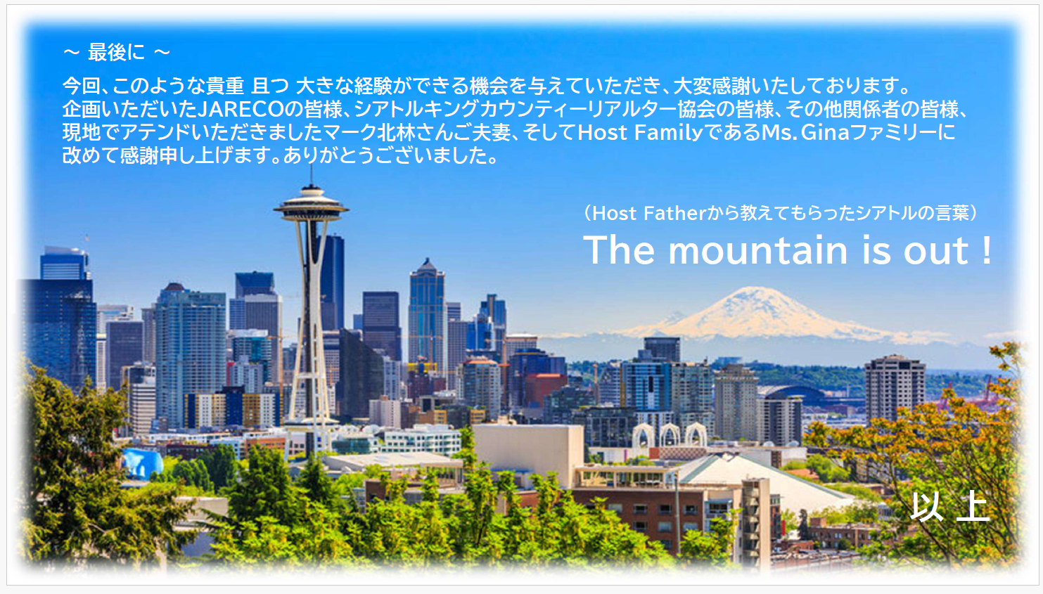 2023年の第2期シアトルキングカウンティホームステイプログラムに参加された生賀 拓人 様よりレポートをいただきました。