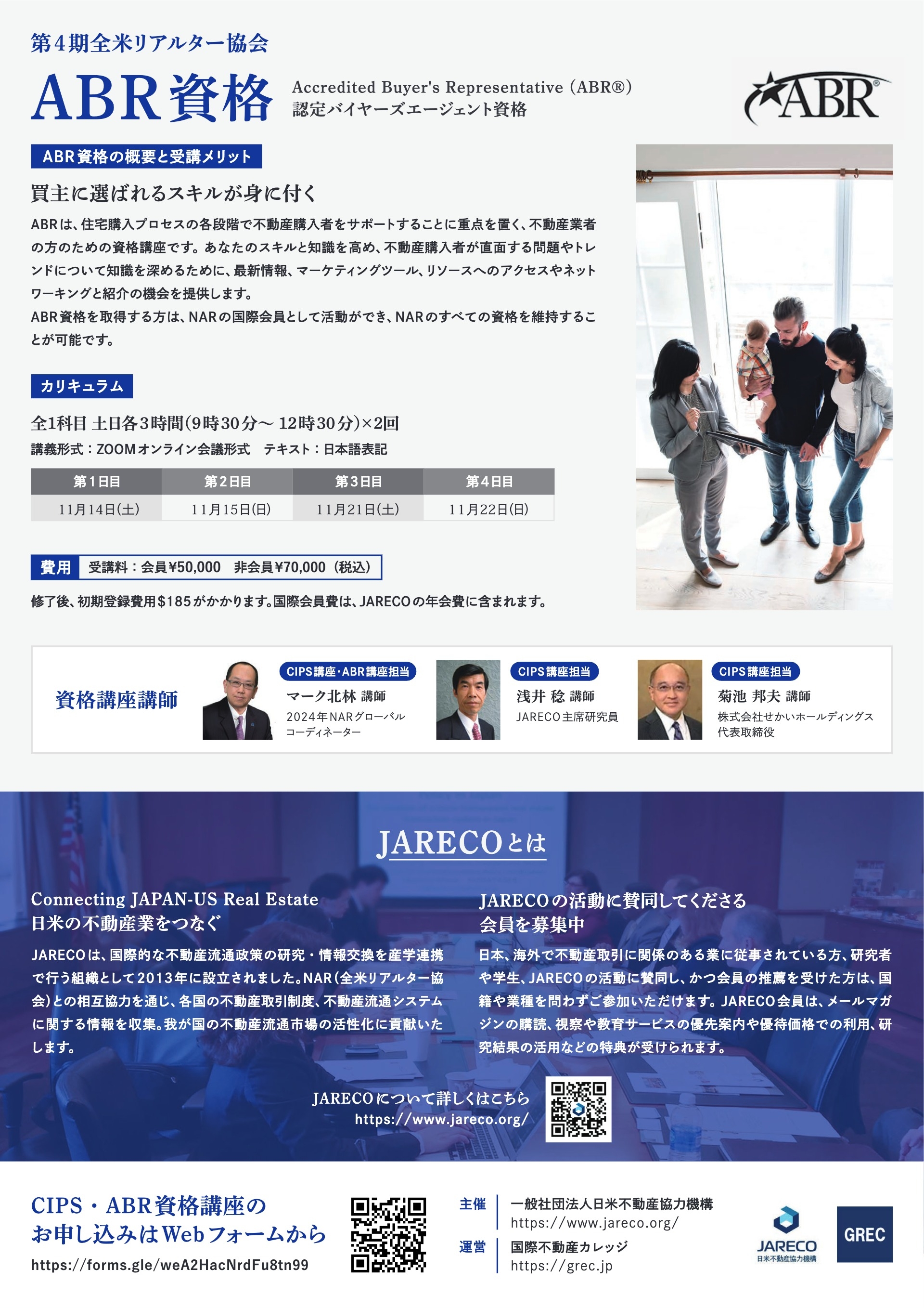 全米リアルター協会(NAR)が運営する、国際不動産取引をマスターするための研修講座のご案内です。